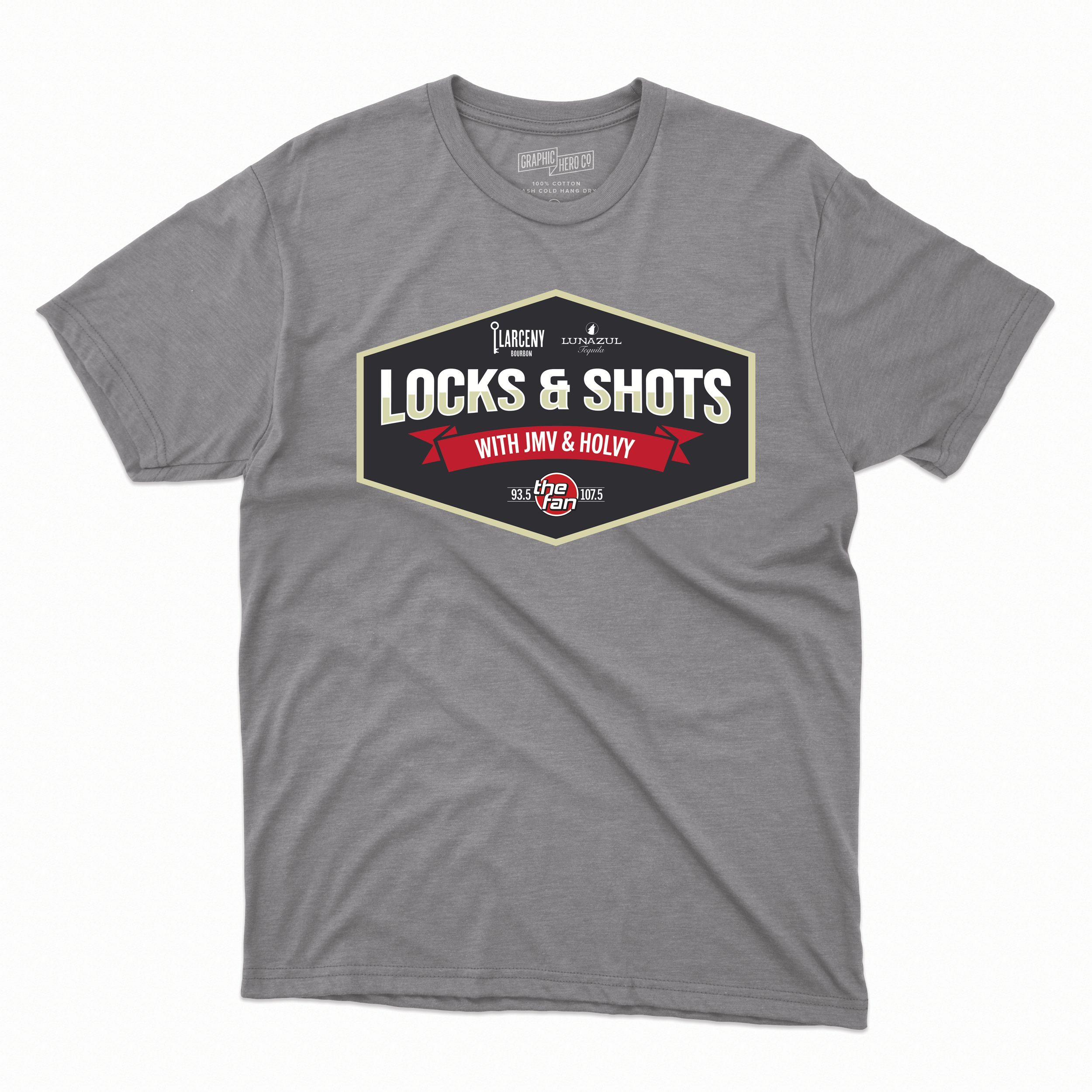 Locks & Shots is an annual event hosted by on air talent JMV of The Fan, an Indianapolis based sports radio station. This logo aimed to engage sports fan to join JMV during the football draft, along with the two main sponsors of the event, Larceny Bourbon and Lunazul Tequila.
